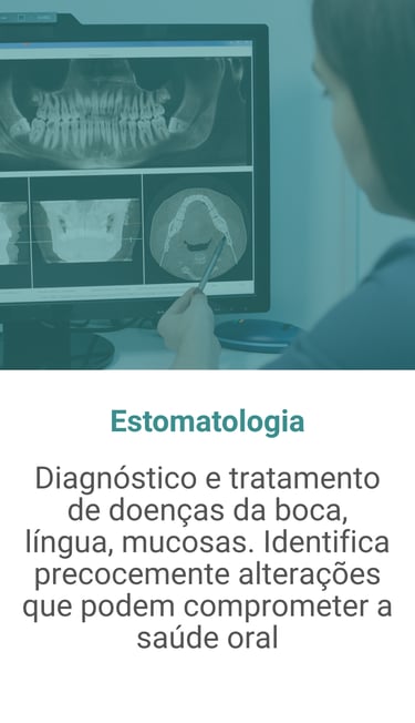 Diagnóstico e tratamento de doenças da boca, língua, mucosas. Identifica precocemente alterações que podem comprometer a saúde oral